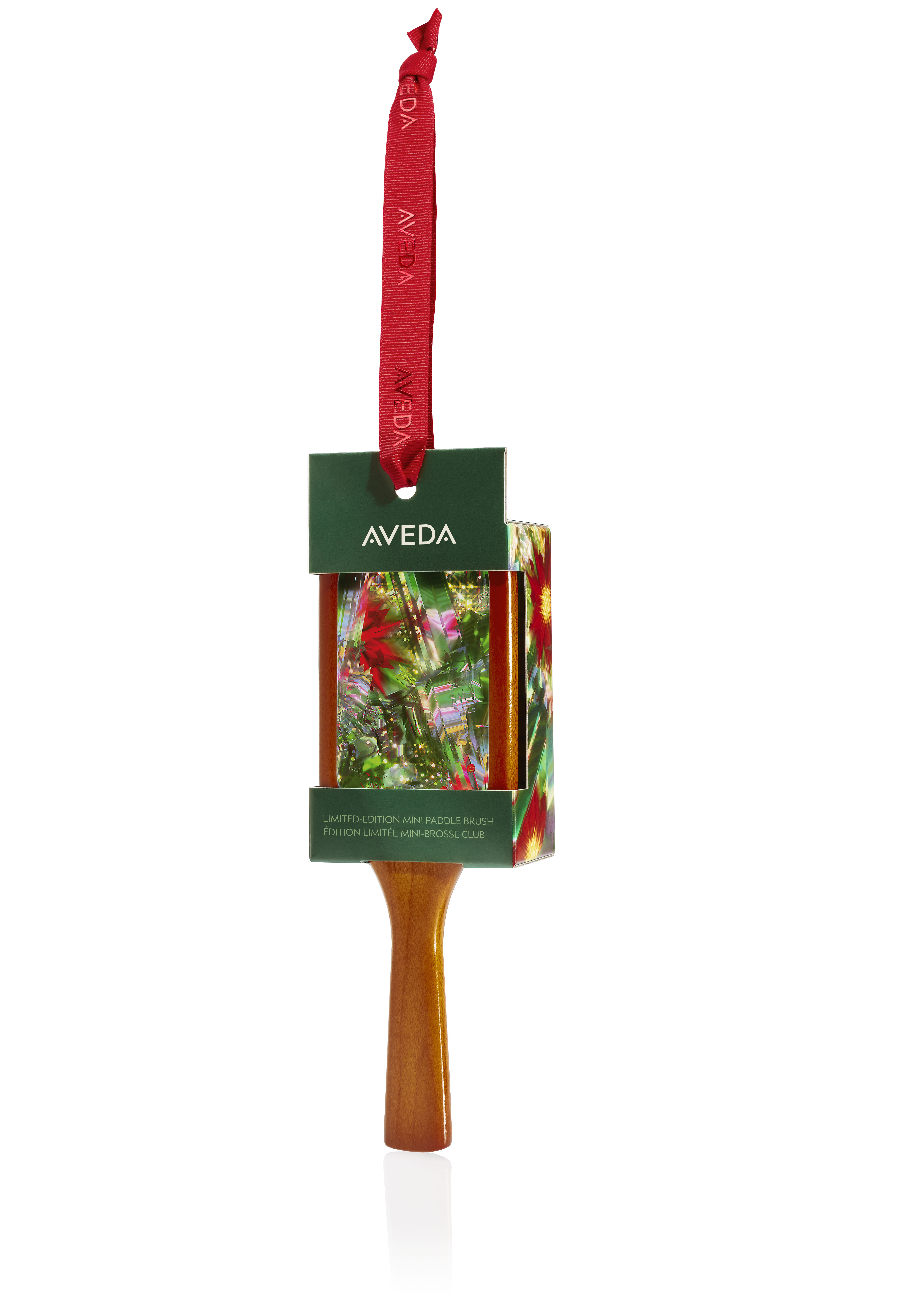 The fan-favorite Aveda paddle brush made mini to style on the go—featuring the festive, limited-edition holiday design.
