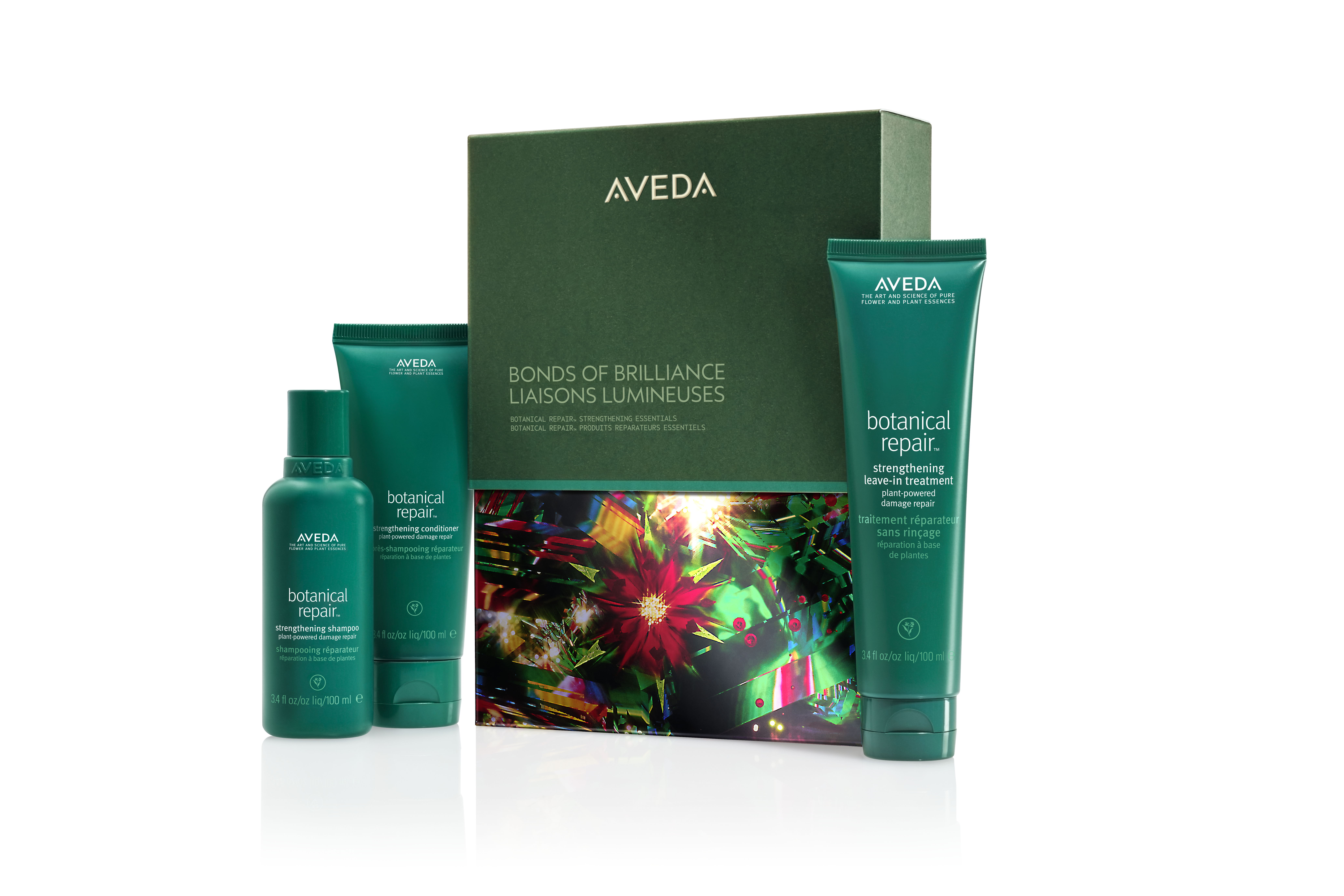 Build new hair bonds with Aveda’s plant-powered triple-action strengthening technology. This limited-edition hair repair holiday gift set includes Botanical Repair Strengthening Shampoo, Botanical Repair Strengthening Conditioner, and Botanical Repair Strengthening Leave-In Treatment.